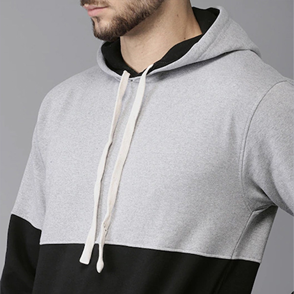 Men Black & Grey Colourblocked Hooded Sweatshirt