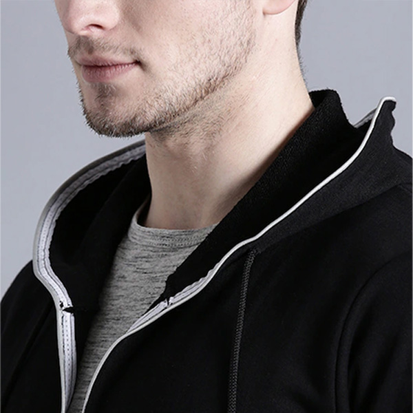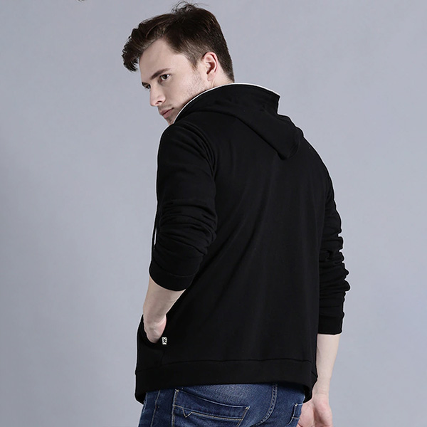 Men Black Solid Hooded Sweatshirt
