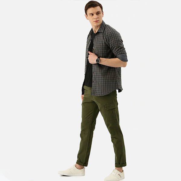 Men Olive Slim Fit Pure Cotton Cargos Trousers