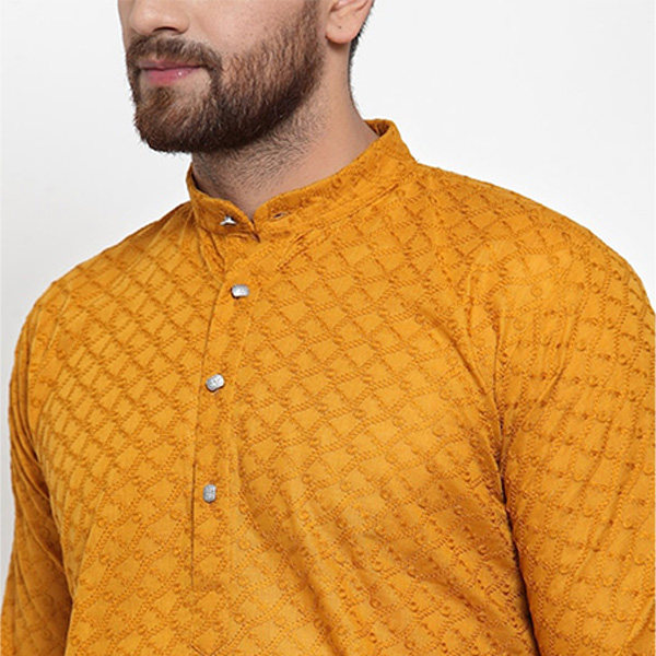 Men Yellow Printed Straight Kurta