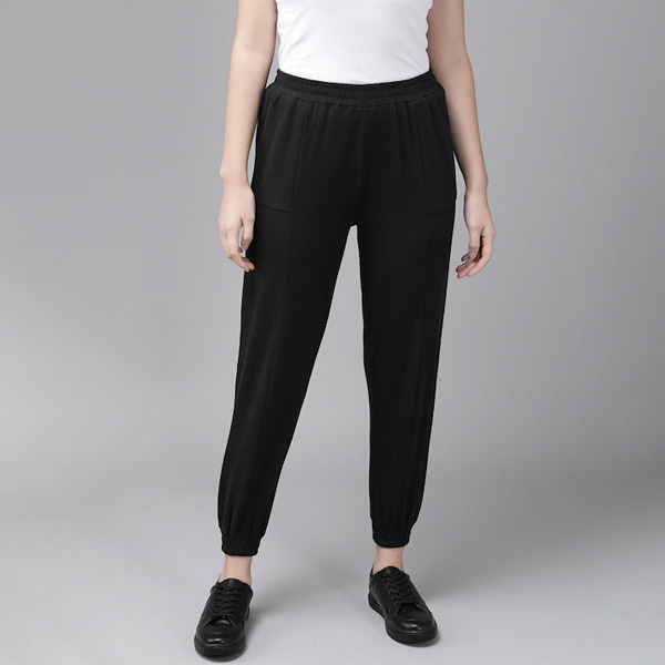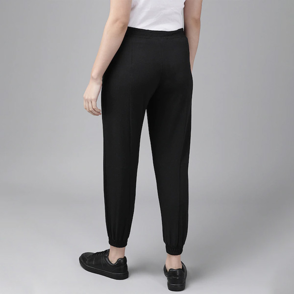 Women Black Solid Straight Fit Cropped Joggers