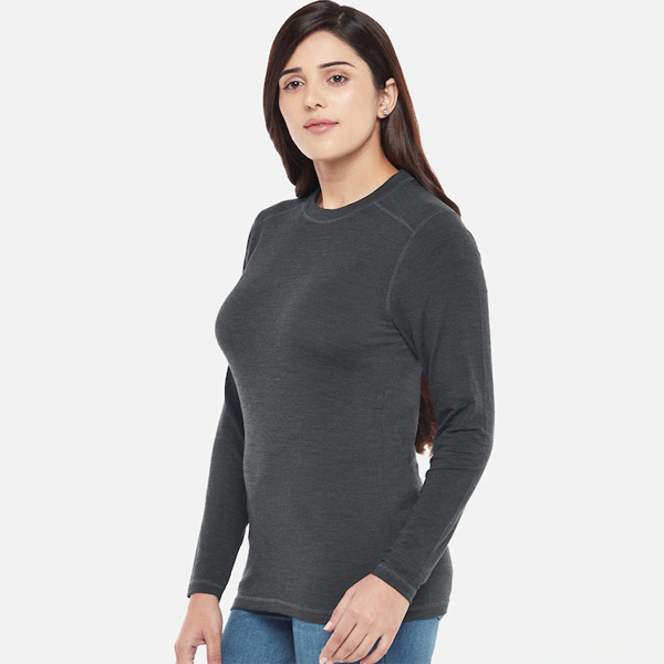 Women Charcoal Grey Pack of 2 Solid Merino Wool & Bamboo Full Sleeves Thermal Tops