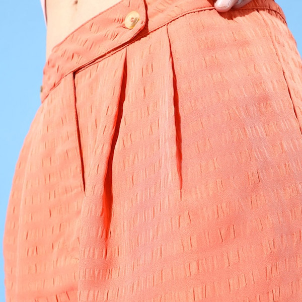 Opt for these shorts and step out looking stylish on your next outing. Enhanced with a self-design print, these shorts have above knee length to accentuate your look. Elegant coral hue Chic self-design print Regular fit Above knee length Polyester, machine wash Trend Alert Designed in joyful and floral prints, summer shorts have a laid-back vibe and are perfect for the not-so-cool seasons. Made from schiffli, cotton, lace, linen, and denim, they feature interesting details, such as tie-ups, paper bag waists, frayed hems, cuffed hems, A-line fits, and oversized fits that make them stand apart.